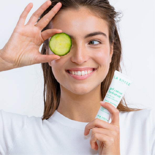 Dans la formule du gel-crème hydratant La Rosée, nous avons choisi les algues pour matifier parfaitement la zone T des peaux mixtes.