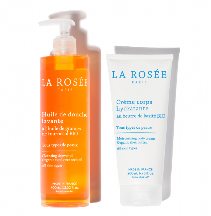 Sous la douche, délectez-vous de cette divine huile de graines de tournesol BIO qui laissera un léger film lipidique sur votre peau, pour la protéger et l'hydrater tout au long de la journée. Appliquez ensuite généreusement la crème corps au beurre de karité BIO. Les parfums de rose et de fleur d'oranger sont enivrants, la texture délicieuse... Vous ne commencerez plus jamais vos journées de la même façon !