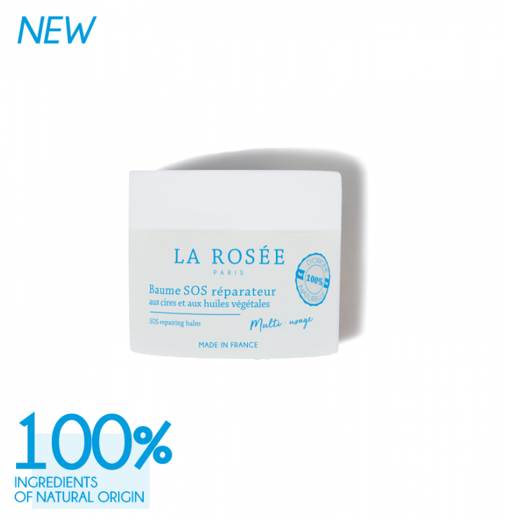 Multi-Use SOS Balm, 100% natural origin, with waxes and vegetal oils to repair, nourish and soothe your face and body's delicate zones.